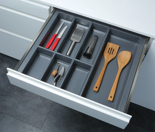 ניתן לחתוך את המגשים כך שיתאימו למגירות בעומק 500 מ"מ.